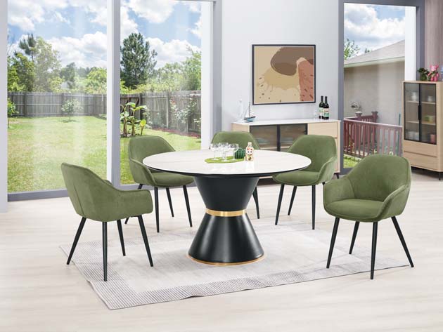商品名稱 古德溫4尺岩板圓桌 商品編號 DCM 567-3 商品尺寸 直徑 120高77CM 桌面 岩板:採用高硬度天然原石 另加工高壓機壓製.經過高溫燒製而成 耐磨.耐高溫 桌腳 黑砂亞光粉體烤漆五金架 塗裝 採用優麗坦.耐磨.耐水塗裝 桌面12mm岩板