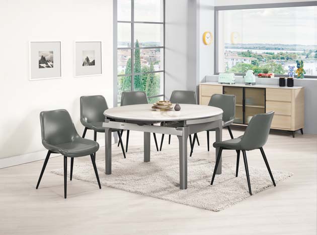 商品名稱 貝德4.5尺多功能玻璃圓桌 商品編號 DCM 570-1 商品尺寸 拉開直徑 135高76.5CM 收合 寬135深85高76.5CM 桌面 岩玻:仿岩燒石強化玻璃 桌腳 橡膠木實木 塗裝 採用優麗坦.耐磨.耐水塗裝 桌面6mm強化石紋玻璃