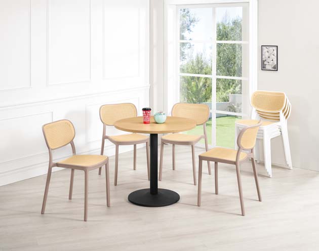 商品名稱 艾麗絲2.7尺圓商業桌 商品編號 DCM 600-2 商品尺寸 直徑 80高75CM 桌面 高級V313-E1防潮板 封邊採用1mmABS材質 耐衝擊.耐磨.耐熱.高鋼性 桌腳 黑沙亞光粉體烤漆五金架 塗裝 採用優麗坦.耐磨.耐水塗裝