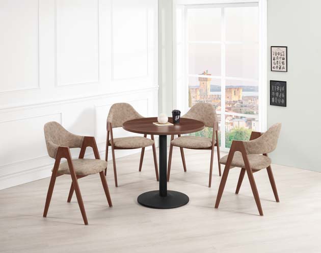 商品名稱 伊爾頓2.7尺圓商業桌 商品編號 DCM 600-3 商品尺寸 直徑 80高75CM 桌面 高級V313-E1防潮板 封邊採用1mmABS材質 耐衝擊.耐磨.耐熱.高鋼性 桌腳 黑沙亞光粉體烤漆五金架 塗裝 採用優麗坦.耐磨.耐水塗裝