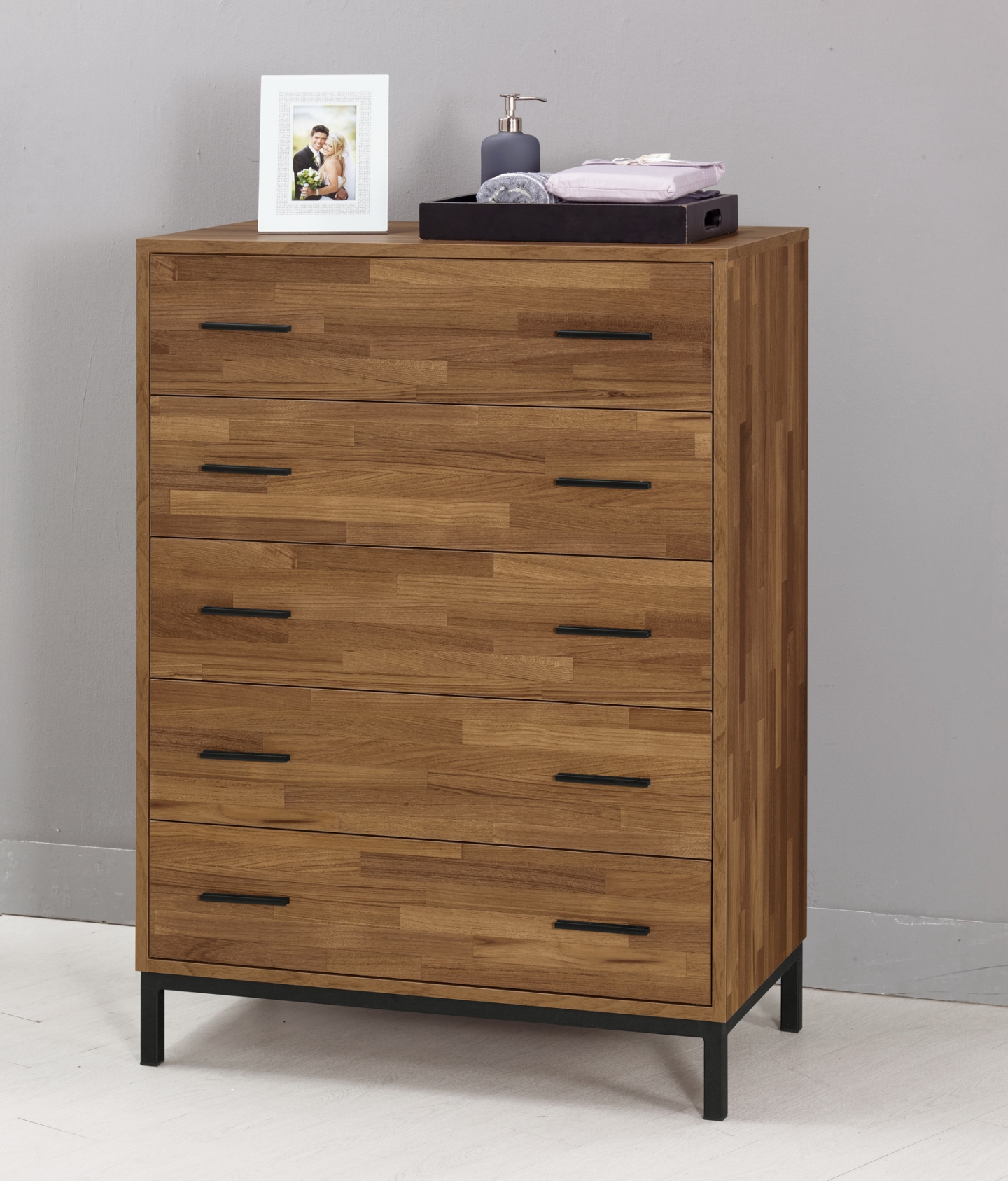 商品編號 DCM 617-6 商品名稱 漢諾瓦2.6尺五斗櫃 商品尺寸 寬81x深45x高111.5CM 材質 採用接拼木紋6分木芯板材質 表面 專業技術耐磨木紋同調浮雕壓紋觸感猶如實木 結構 黑砂粉體五金架 塗裝 採用優麗坦.耐磨.耐水塗裝 抽屜 採用台灣製造高級鋼珠滑軌 背板 美背式處理 手把 台灣製造鋁合金烤漆手把