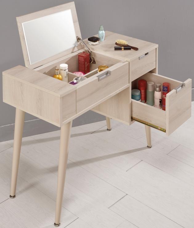 商品編號 DCM 581-3 商品名稱 愛莎3尺化妝台(全組) 商品尺寸 寬90x深40x高78CM 材質 採用符合國際標準低甲醛防蛀木心板 塗裝 採用優麗坦.耐磨.耐水塗裝 抽屜 鋼珠滑軌 背板 美背式處理 腳座 橡膠木實木